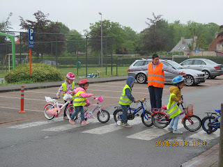 De regen kon de pret niet bederven. Juf joke had een heus parcours aangelegd en iedereen kon zijn fietskunsten tonen. Iedereen heeft genoten. Kijk maar even mee ;-)
